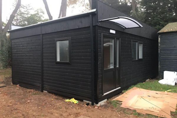 We very rarely provide a black building, so we were interested to see how this turned out. It actually looks very smart finished with Thermowood cladding and stained black. The colour choice was stipulated in the planning application and used to match the existing groundsman storage facility.